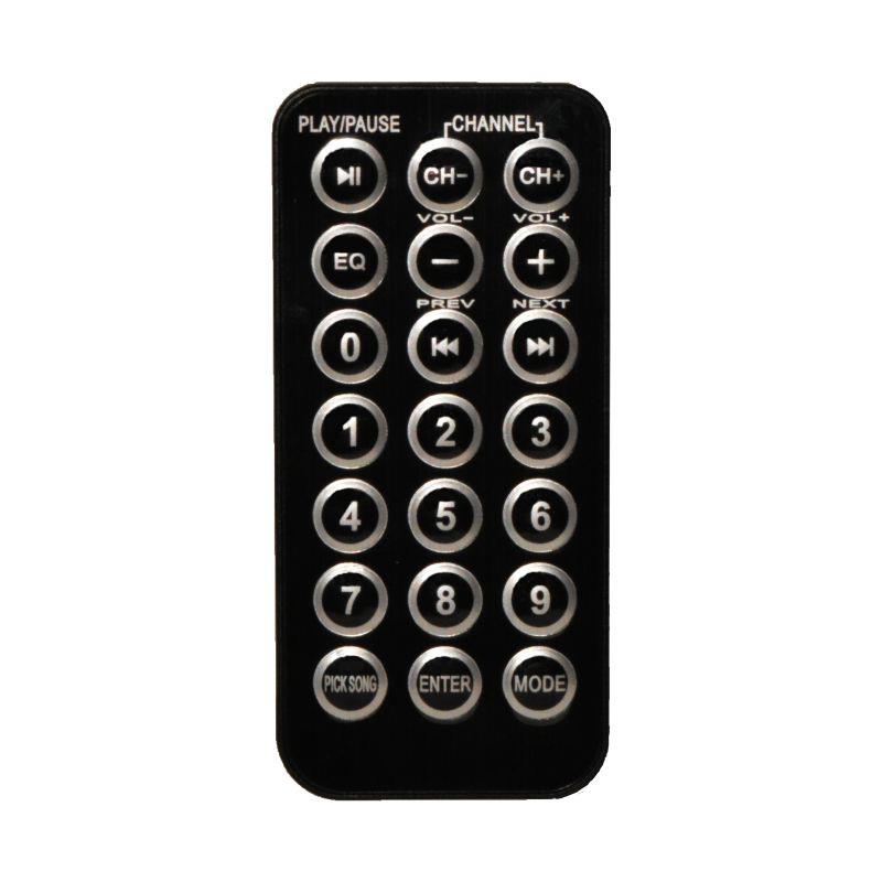 Incluye: Micrófono metálico con cable, control remoto y cable de alimentación