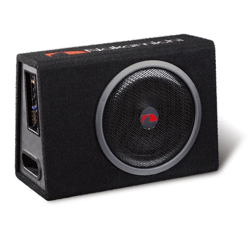 Subwoofer activo NAKAMICHI NBX30A de 12", diseñado para brindar graves potentes y definidos en el vehículo. Ideal para sistemas que requieren alto rendimiento y confiabilidad.