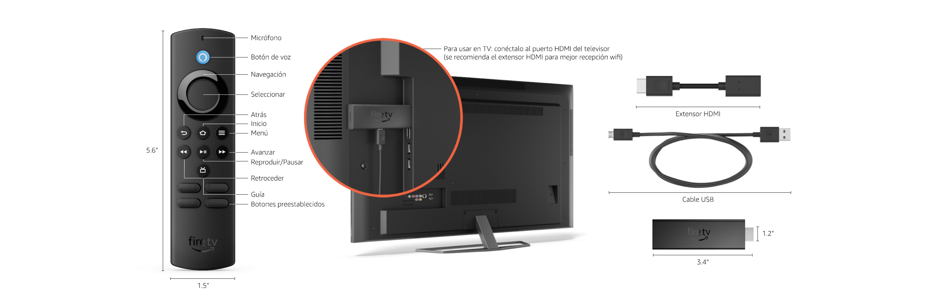 - Requisitos del sistema: Televisión de alta definición con entrada HDMI disponible, conexión a internet vía Wi-Fi, una toma de corriente