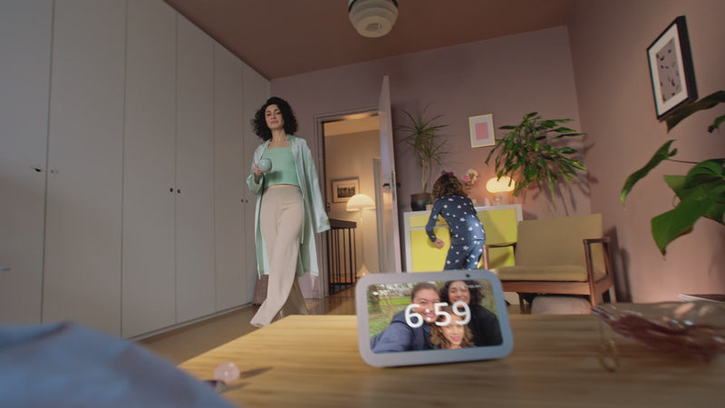 Nuestro Echo Show 5 más rápido acelera las respuestas de Alexa para que puedas controlar con rapidez tu Smart Home, como apagar luces compatibles en tu casa sin levantarte de la cama. También puedes programar rutinas o incluso iniciarlas con tu movimiento. Cuando entres a una habitación, se puede encender la lámpara o comenzar a reproducir música, así de simple.