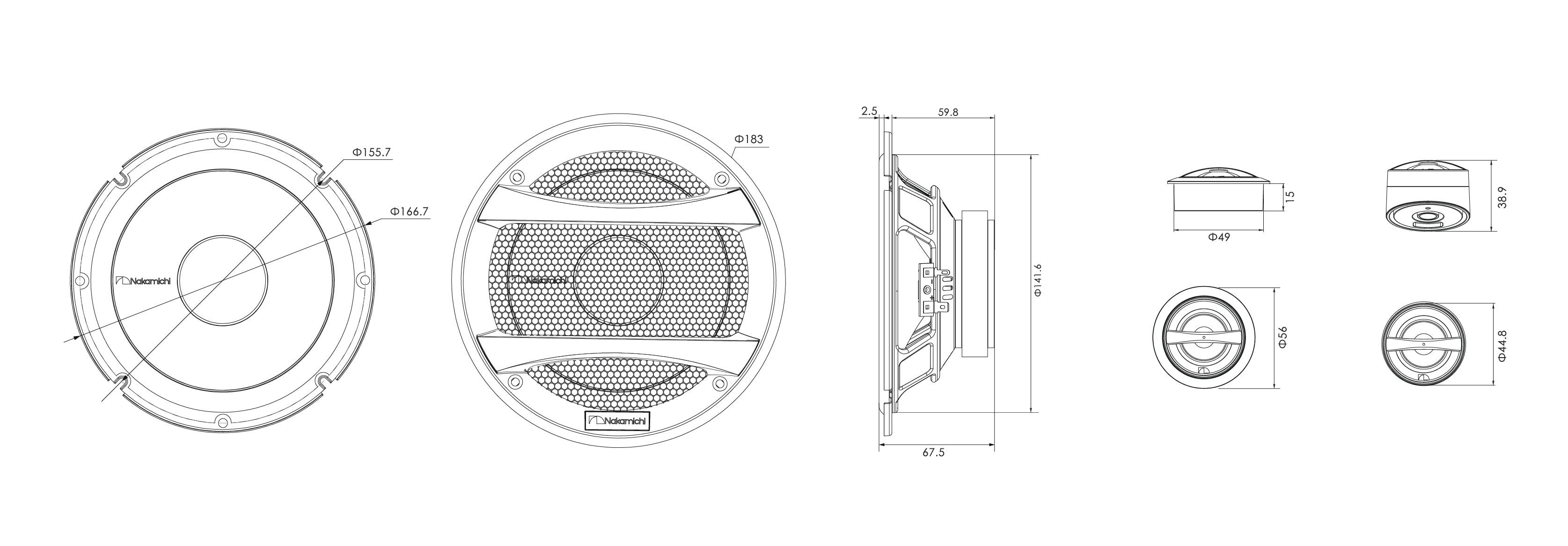 Además, su profundidad de montaje de más de 2,4” (60 mm) permite una instalación versátil y segura en una gran variedad de vehículos, adaptándose fácilmente a los espacios de fábrica o sistemas personalizados. Con un peso total aproximado de 1,6 kg, el NSE-CS1658 combina robustez estructural y diseño compacto, ofreciendo un equilibrio ideal entre rendimiento acústico y facilidad de instalación.