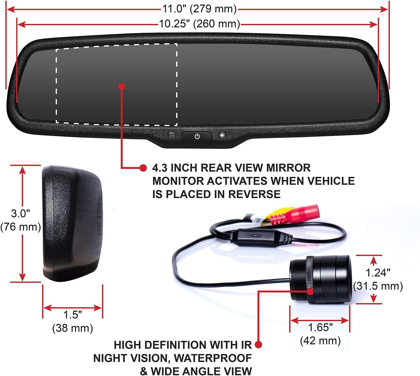 El espejo retrovisor BV430RVM tiene una pantalla de video digital incorporada de alta resolución (480 x 234) de 4,3 pulgadas. Esto le permite ver lo que hay detrás de usted cuando retrocede.