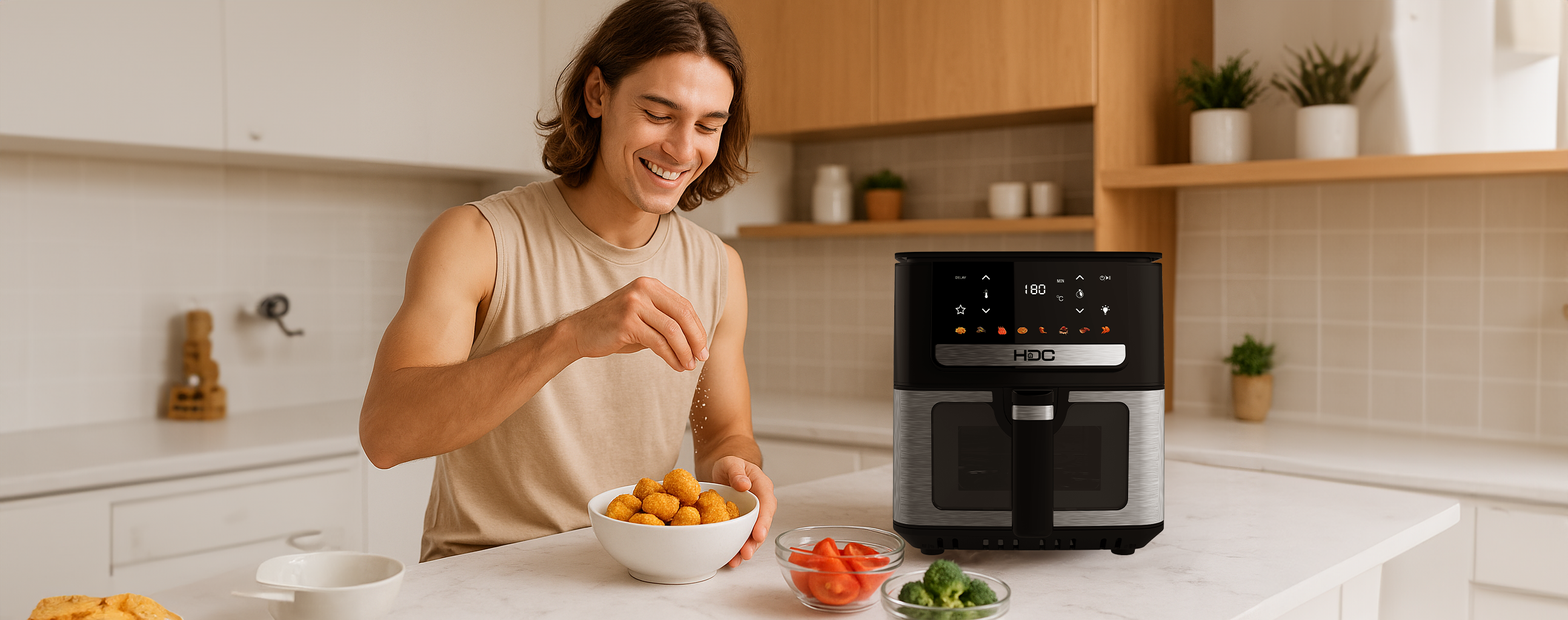 La freidora de aire HDC HAF-SH65SB es una excelente opción para quienes buscan cocinar de manera más saludable sin renunciar al sabor ni a la comodidad. Con una capacidad de 6.5 litros y una potencia de 1700W, esta freidora ofrece el equilibrio ideal entre rendimiento, tamaño y eficiencia, permitiéndote preparar desde porciones familiares hasta comidas completas en menos tiempo.