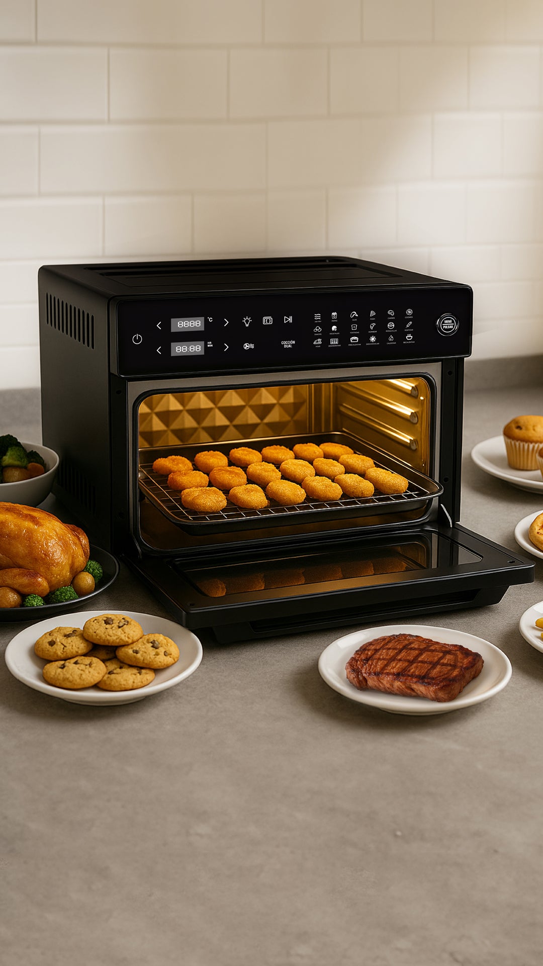 Diseñado para los amantes de la cocina moderna, el horno smart eléctrico HDC modelo HAF-SO30LBK combina potencia, capacidad y tecnología avanzada en un solo equipo multifuncional. Con una capacidad de 30 litros, es ideal para preparar comidas de gran tamaño, incluso un pollo entero, aprovechando su amplio espacio interior y su tecnología de cocción inteligente.