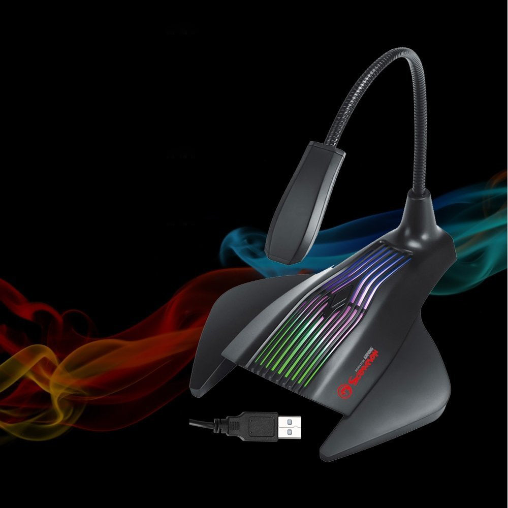 El Marvo MIC-01 es un micrófono USB con iluminación RGB, ideal para gamers y streamers que buscan calidad de audio sin complicaciones. Gracias a su diseño moderno y su cable de 1.5 metros, brinda practicidad y un toque estético al setup.