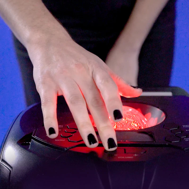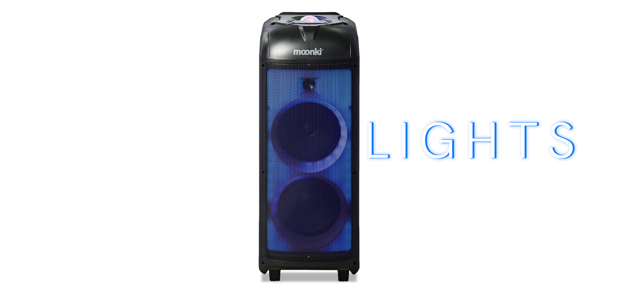 La superficie del frente está completamente iluminada con luces LED que poseen efectos de fiesta, de llamas y audio-rítmicos para que cualquier espacio se convierta en una pista o escenario de baile y te muevas al son de tu selección musical.