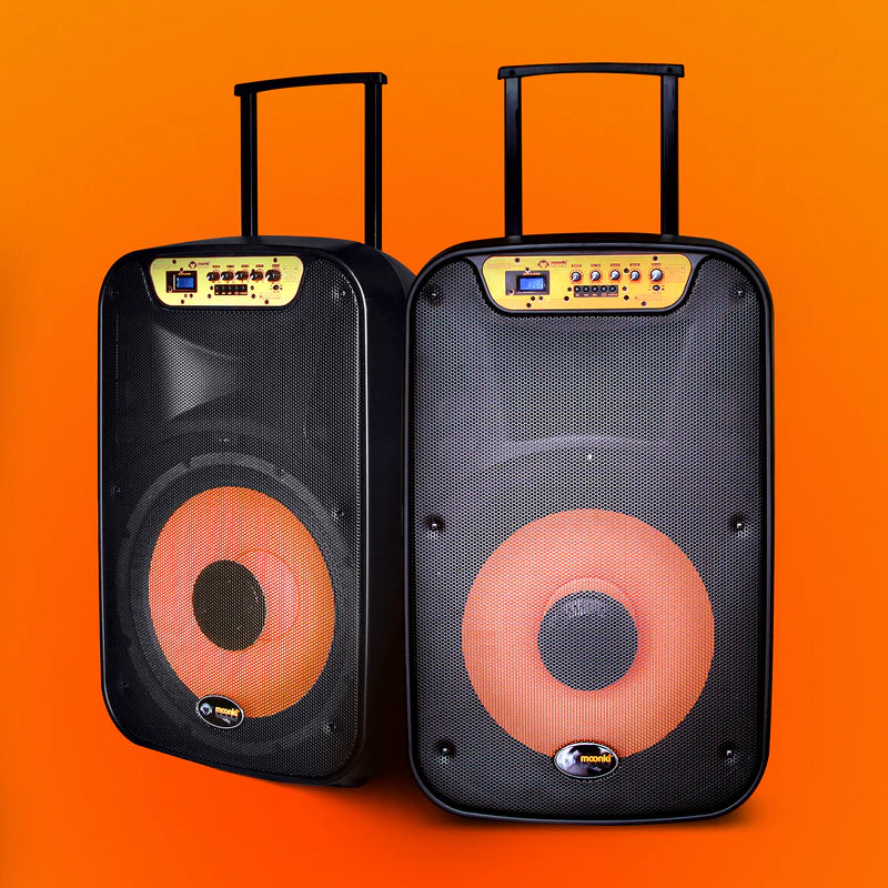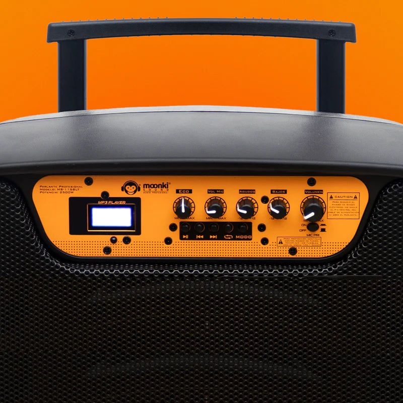 El Moonki Sound MS-115B es un parlante tipo Speaker activo de dos vías que dispone de conexión inalámbrica mediante Bluetooth. Con una grandiosa potencia de 2500W PMPO hará vibrar cualquier espacio en donde lo coloques, aportando experiencias agradables de gran calidad sonora que lo posicionan como la mejor opción entre los parlantes semi-profesionales de cualidades excepcionales para hacerte disfrutar del placer de escuchar.