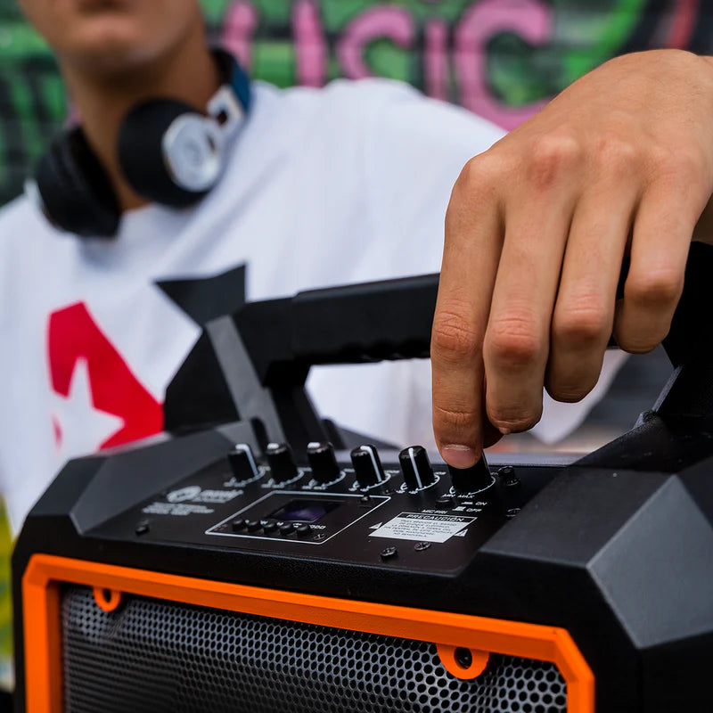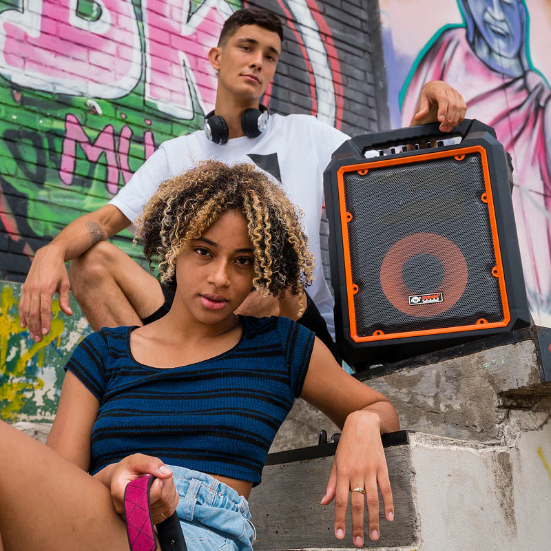 Originando que los tiempos de reproducción se adapten a todo tipo de circunstancia, este Speaker es perfecto para salir a disfrutar de tu música al aire libre o juntarte con amigos a cantar y rapear en donde sea, sin que se vuelva necesario producir una constante recarga.
