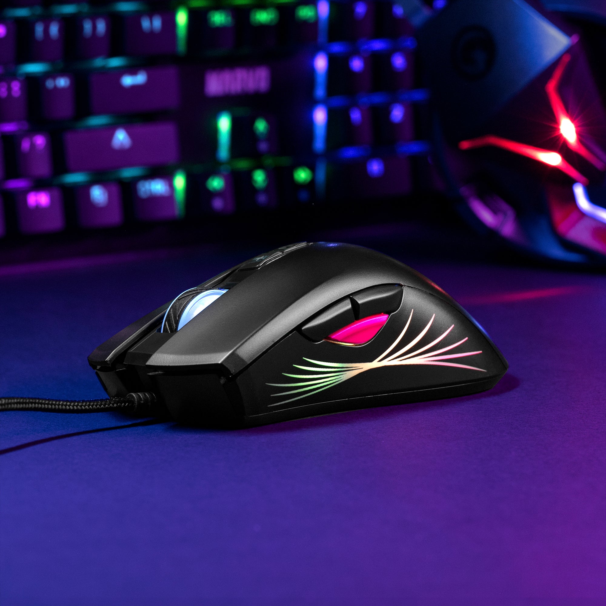 En cuanto a estética, el Marvo M519 incorpora una iluminación LED RGB dinámica, que ofrece una paleta de 16,8 millones de colores y 7 modos diferentes de iluminación. Los efectos lumínicos son totalmente configurables, lo que te permite ajustar el color, la intensidad y el ritmo de las luces para sincronizarlas con el resto de tu setup o adaptarlas a tu estado de ánimo. Desde tonos sutiles hasta efectos vibrantes, el M519 transforma tu escritorio en una verdadera estación gamer llena de estilo y personalidad.