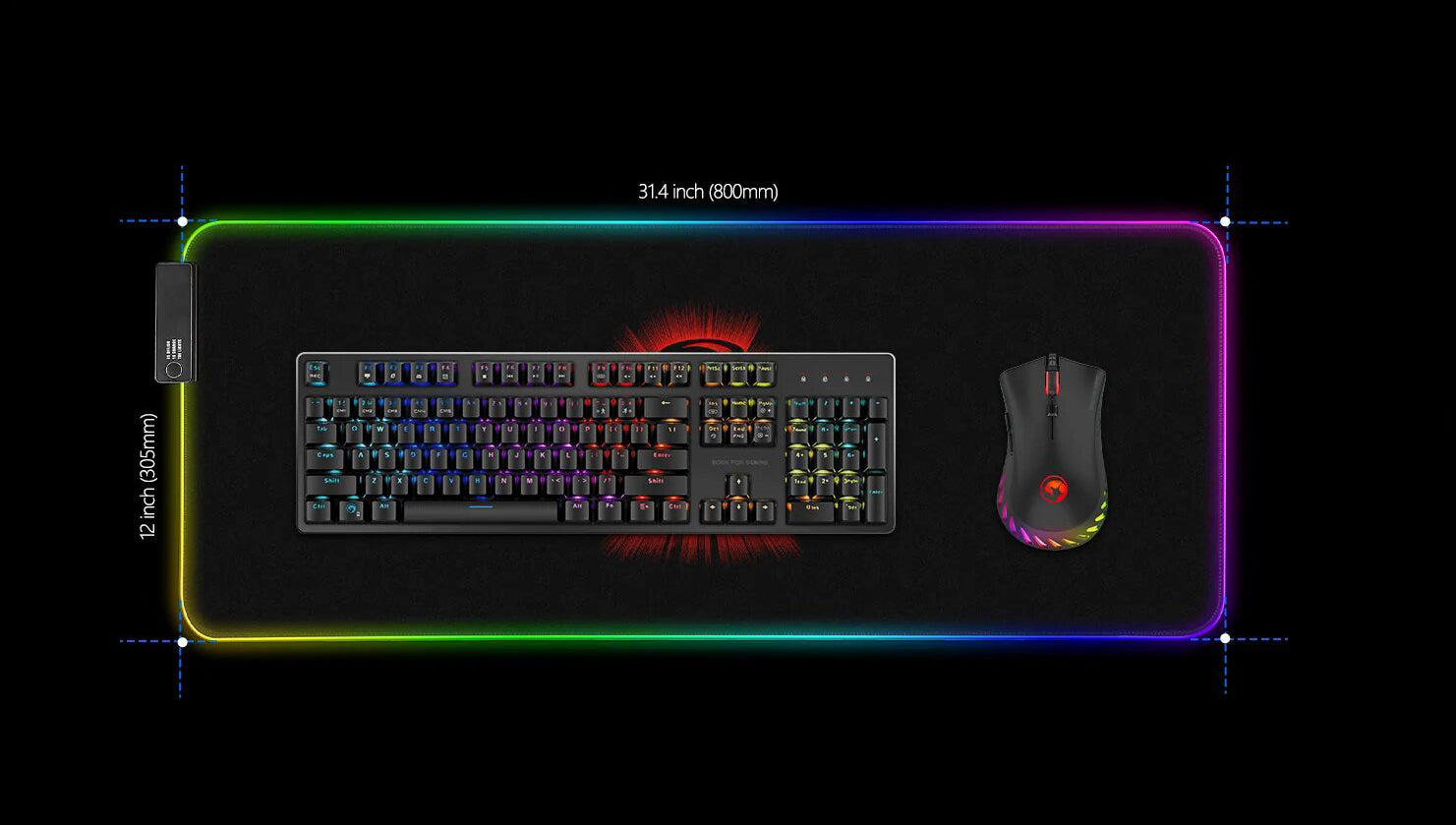 El Marvo G45 XL es un mousepad gamer extra grande con iluminación RGB, diseñado para cubrir gran parte del escritorio y mejorar la experiencia de juego. Su superficie suave y precisa es ideal para movimientos rápidos y control total.