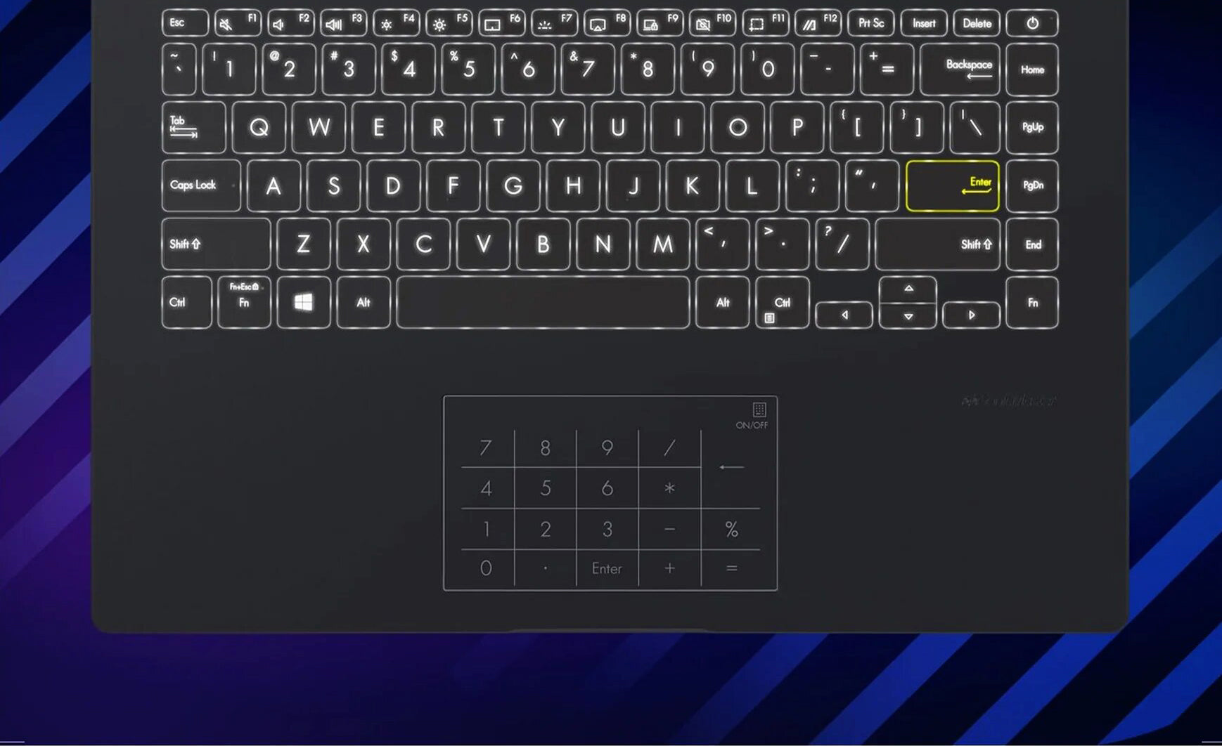 La apariencia audaz continúa en el interior, donde un Enterkey amarillo brillante ocupa un lugar central. Es algo nunca antes visto en el diseño de portátiles.