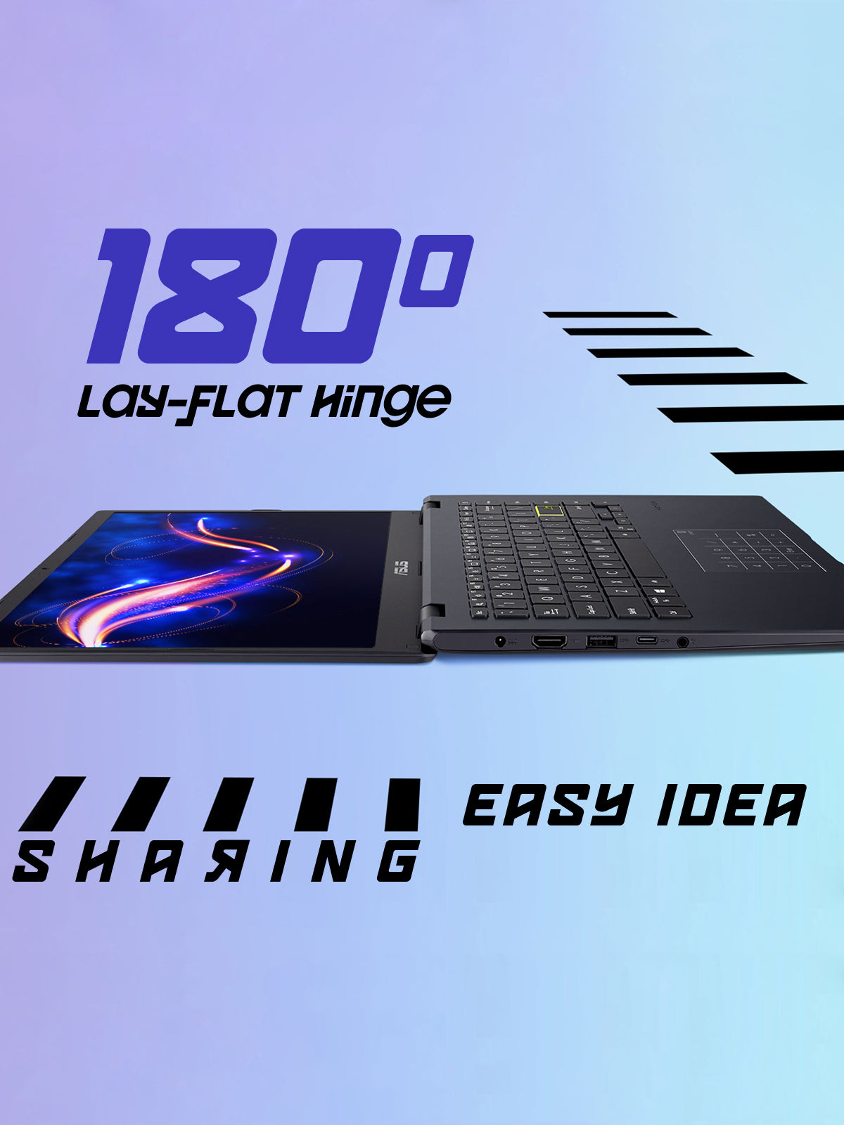 Inteligentemente diseñada, de 180°super-chata la bisagra facilita compartir contenido o colaborar con amigos.