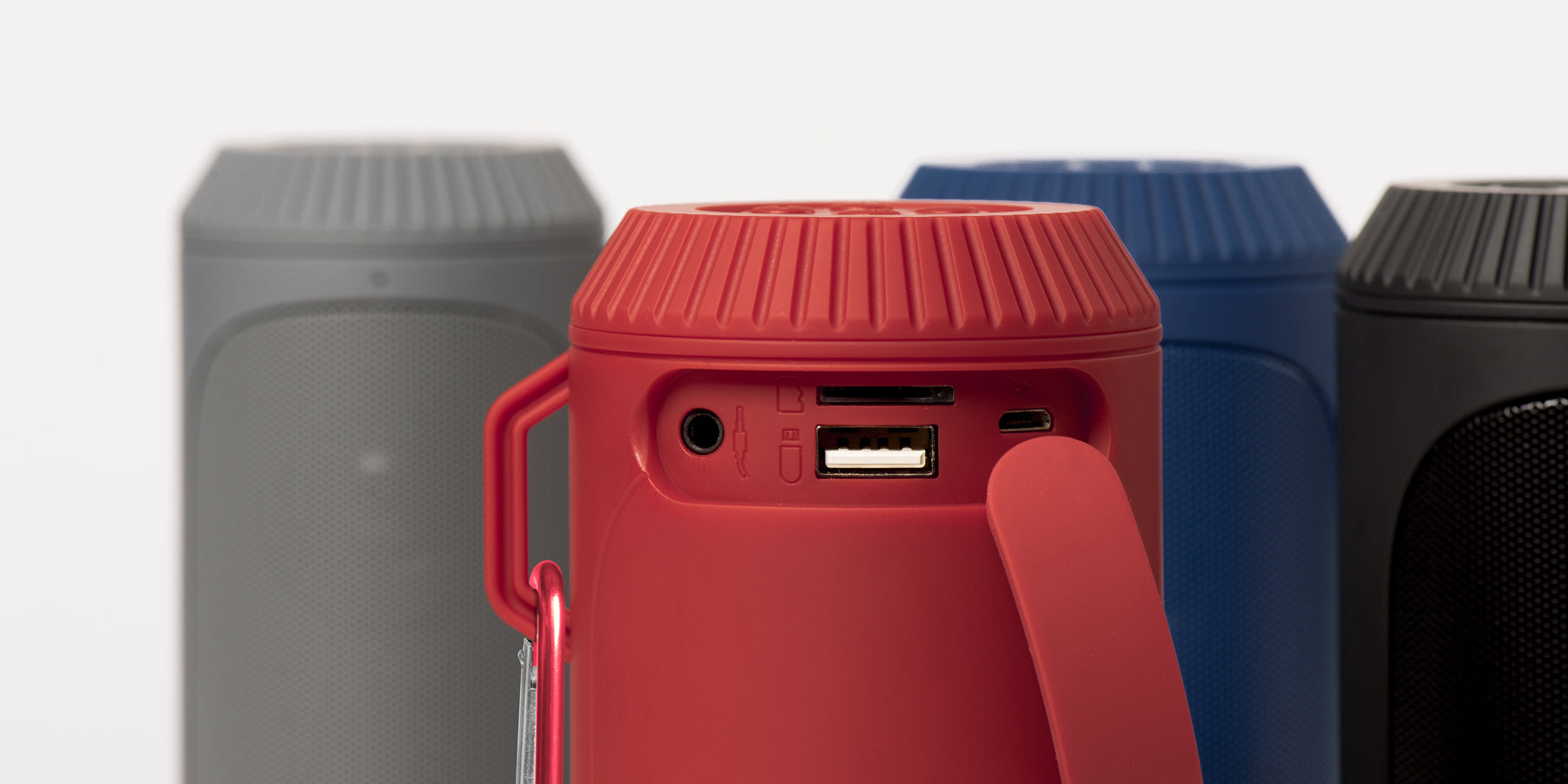 Aparte del tamaño compacto y ergonómico de este parlante, para llevarlo donde vayas, sus materiales están diseñados con una base antideslizante de goma y revestimientos UV, su carcasa vienen con clasificación IPX4 resistente a la intemperie, lo que garantiza durabilidad y otección contra elementos agresivos.