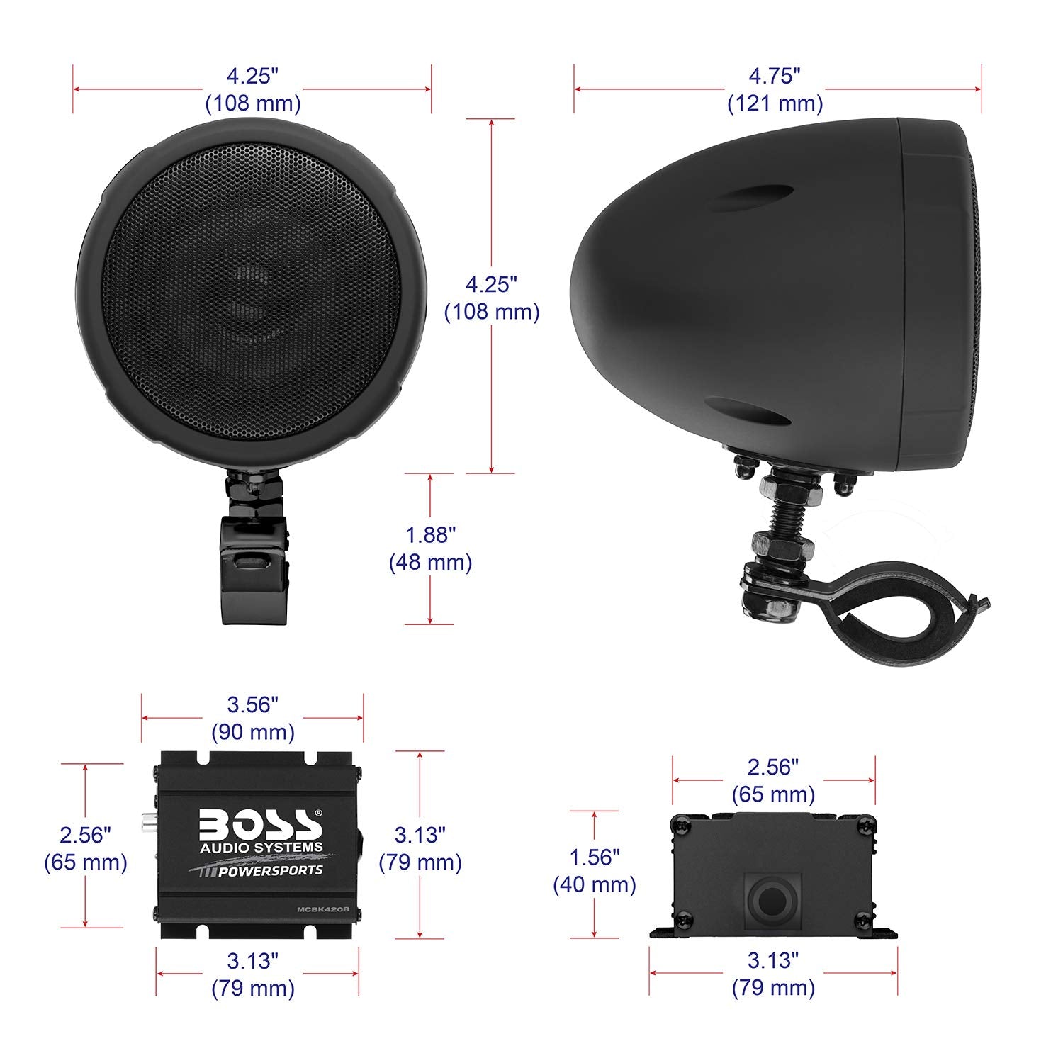 Disfruta de una gran música en los senderos con el sistema de sonido impermeable Boss Audio MCBK420B. Explota tus canciones en tu motocicleta, scooter, ATV con el amplificador compacto y un par de altavoces de rango completo de 3.0 in.