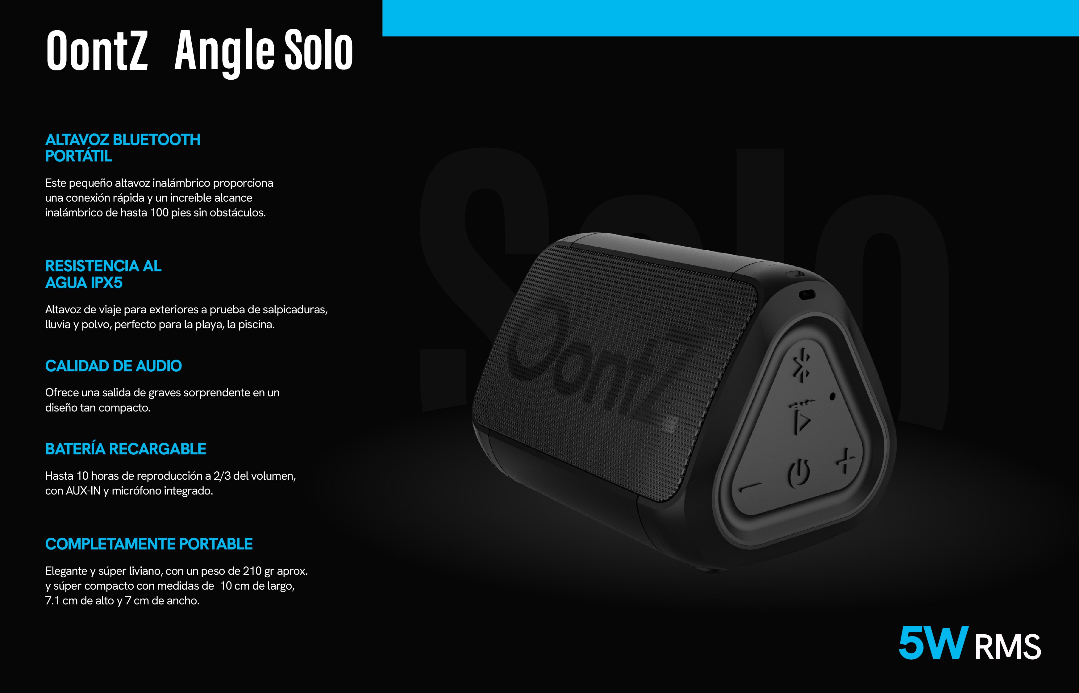 Es el compañero ideal para quienes buscan una experiencia auditiva superior en un formato portátil. Ya sea para escuchar música, podcasts o llamadas en altavoz, el OontZ Angle Solo brinda una calidad de audio envolvente en todo momento.