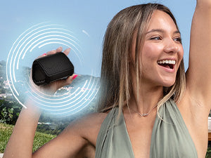 Resistente al agua, portátil y ligero—¡perfecto para viajar! Escucha tu música favorita en casa, en la ducha, en la playa o junto a la piscina.