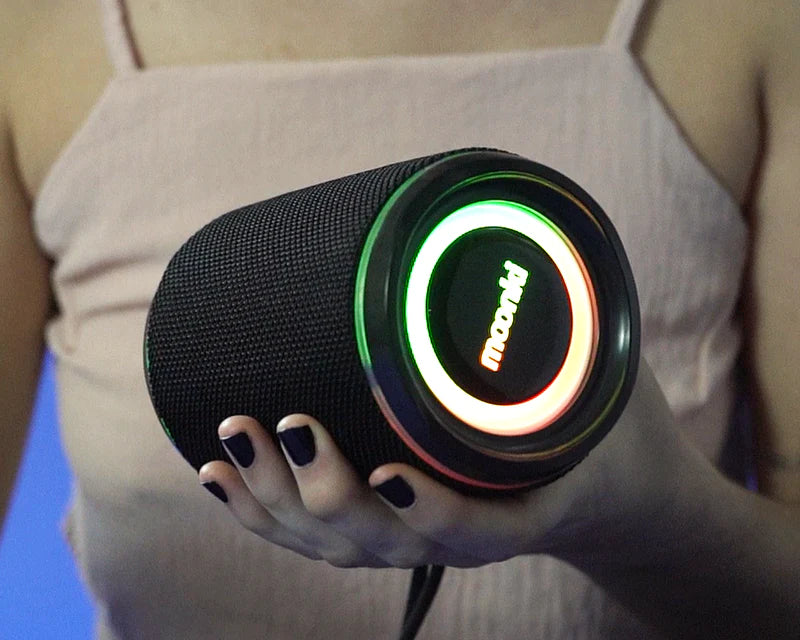 El Moonki MO-R88BT es un fascinante parlante portátil con conectividad Bluetooth 5.1 de un rango de 10m de alcance y conectividad TWS (True Wireless Stereo).