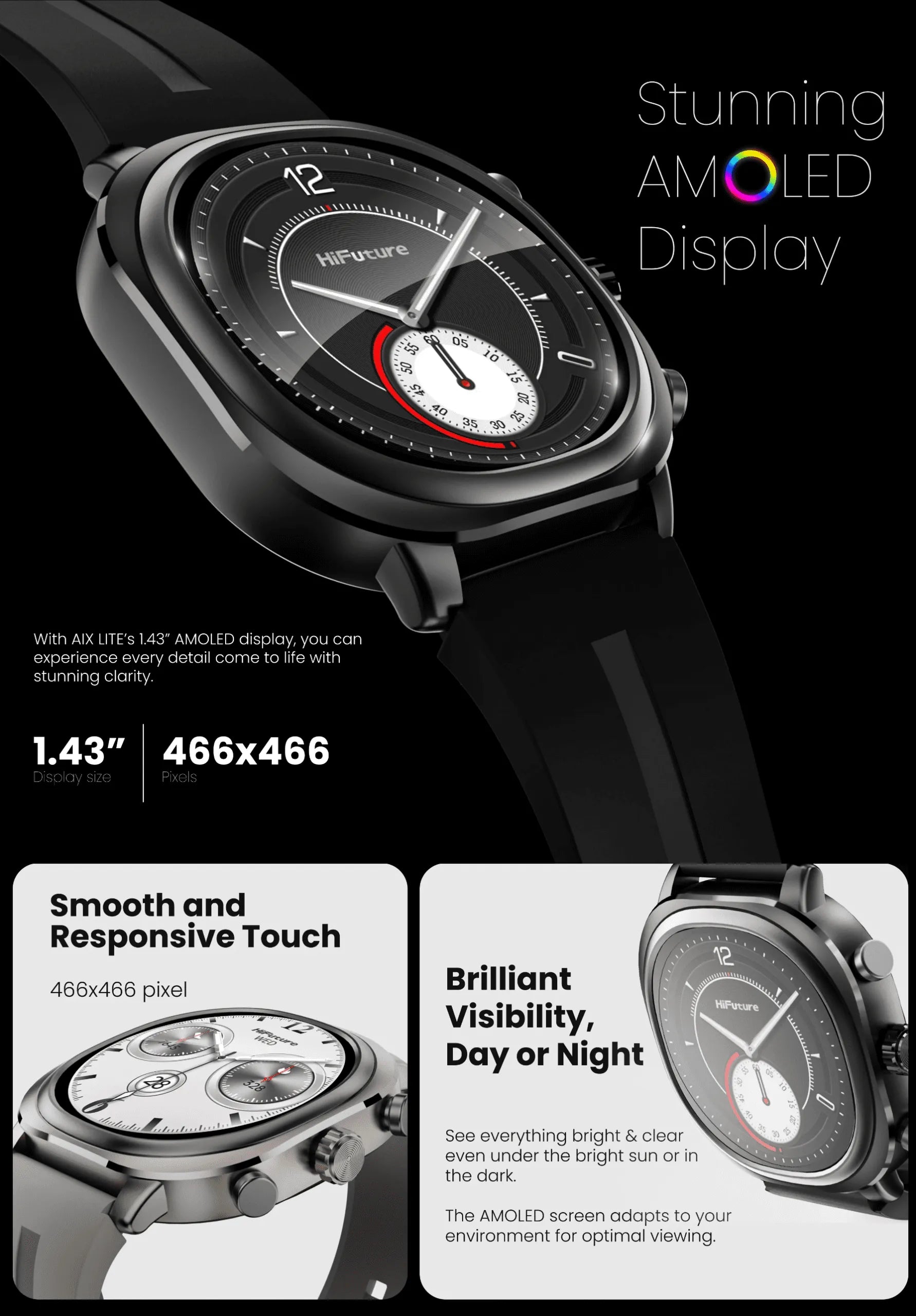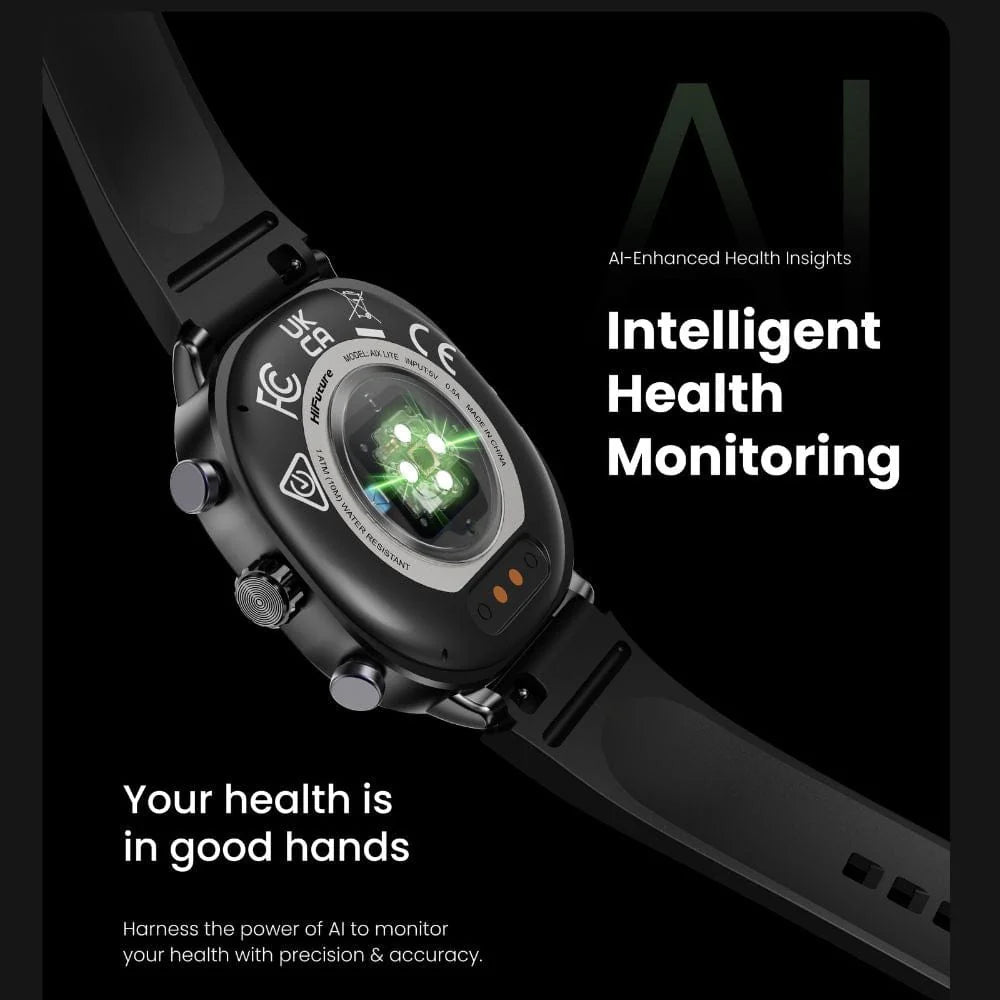 El HiFuture AIX Lite es un reloj inteligente moderno y ligero, diseñado para quienes buscan estilo y funcionalidad en un mismo dispositivo. Con correa de 22mm en color negro, pantalla de alta definición y funciones de salud y deporte, es el compañero perfecto para el día a día.