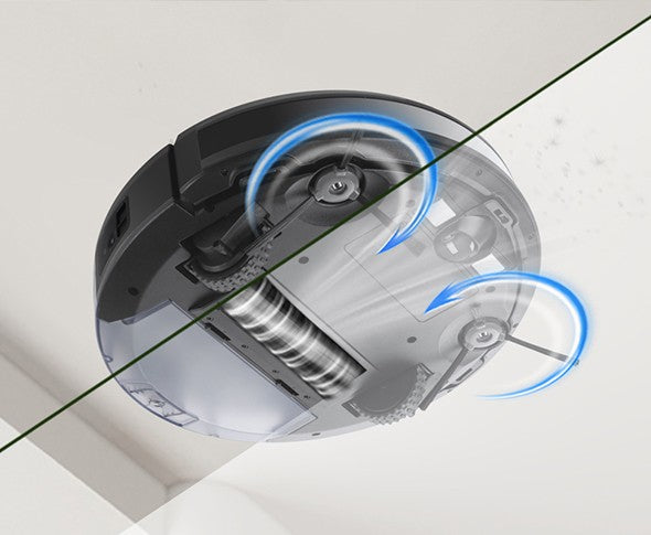 El diseño inteligente de tu robot aspirador se asegura de que nada quede sucio.Tanto en alfombras como en suelos duros, sus 3 niveles de limpieza con cepillos laterales, cepillos giratorios eléctricos y aspirado lo limpian todo.