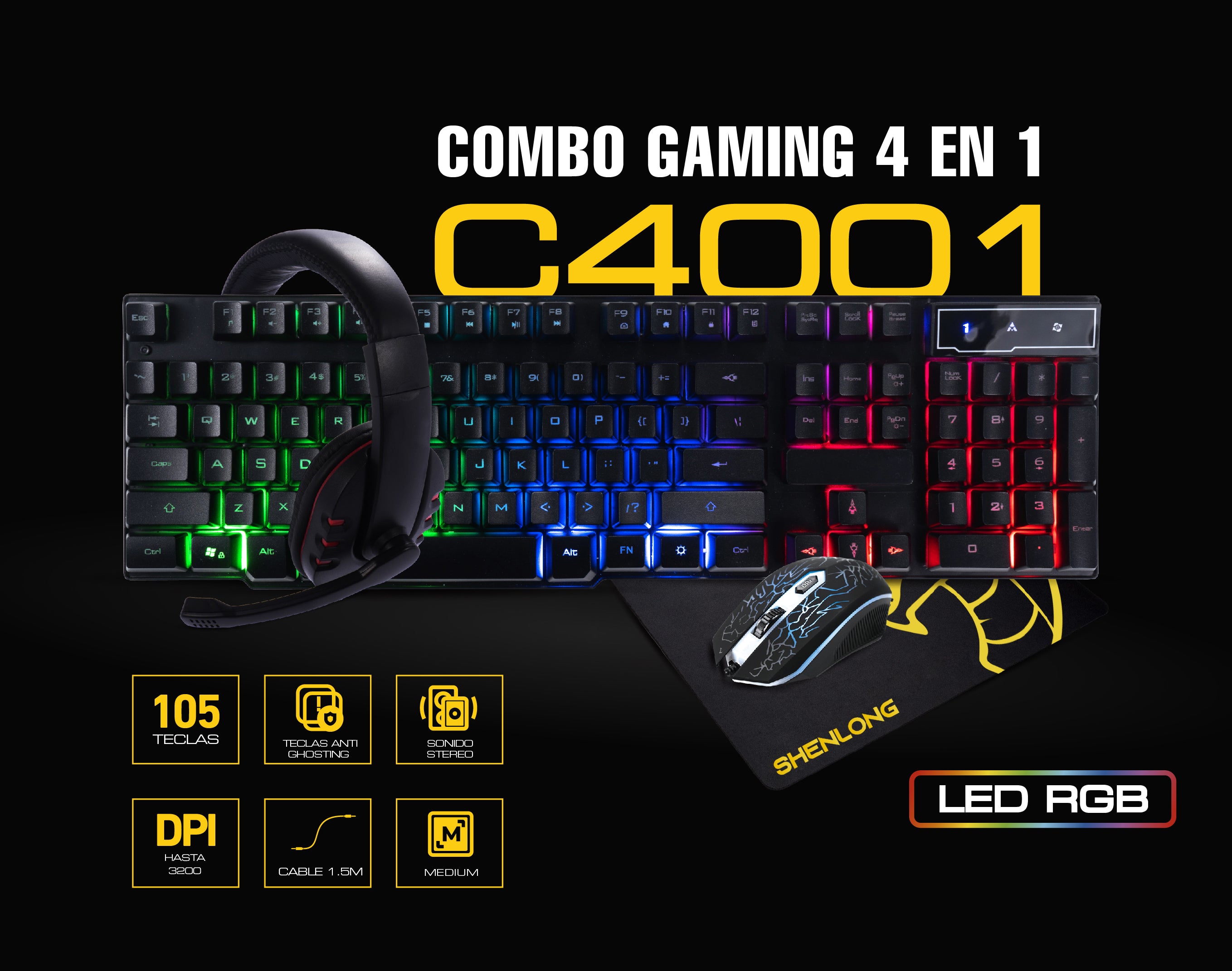 Obtén una experiencia de juego completa con el Set Gaming 4 en 1 Shenlong C4001.