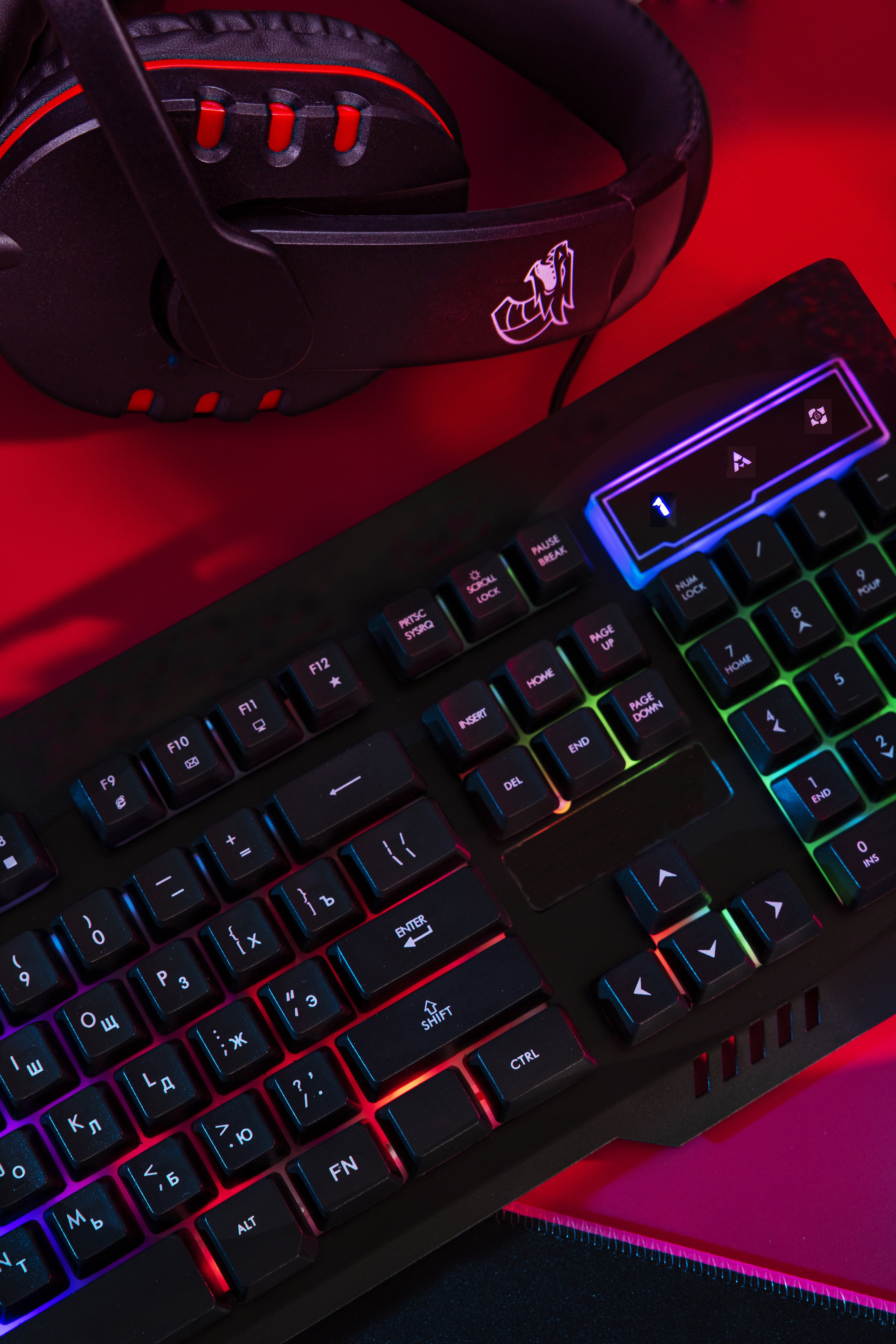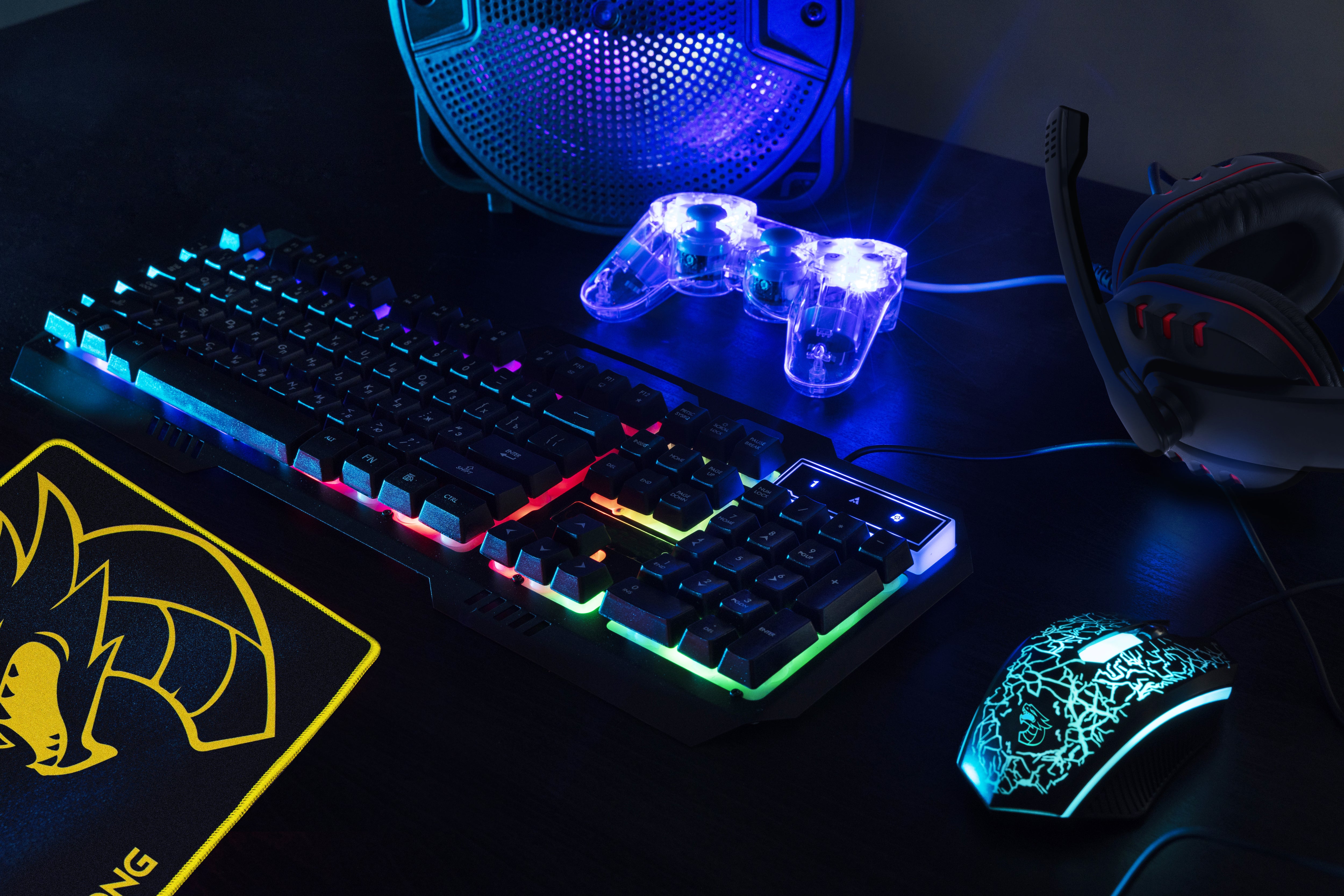 Contiene un teclado de membrana que dispone de función antighosting, un mouse con sensibilidad regulable de hasta 3200 DPI, un headset con micrófono incorporado y un pad antideslizante.