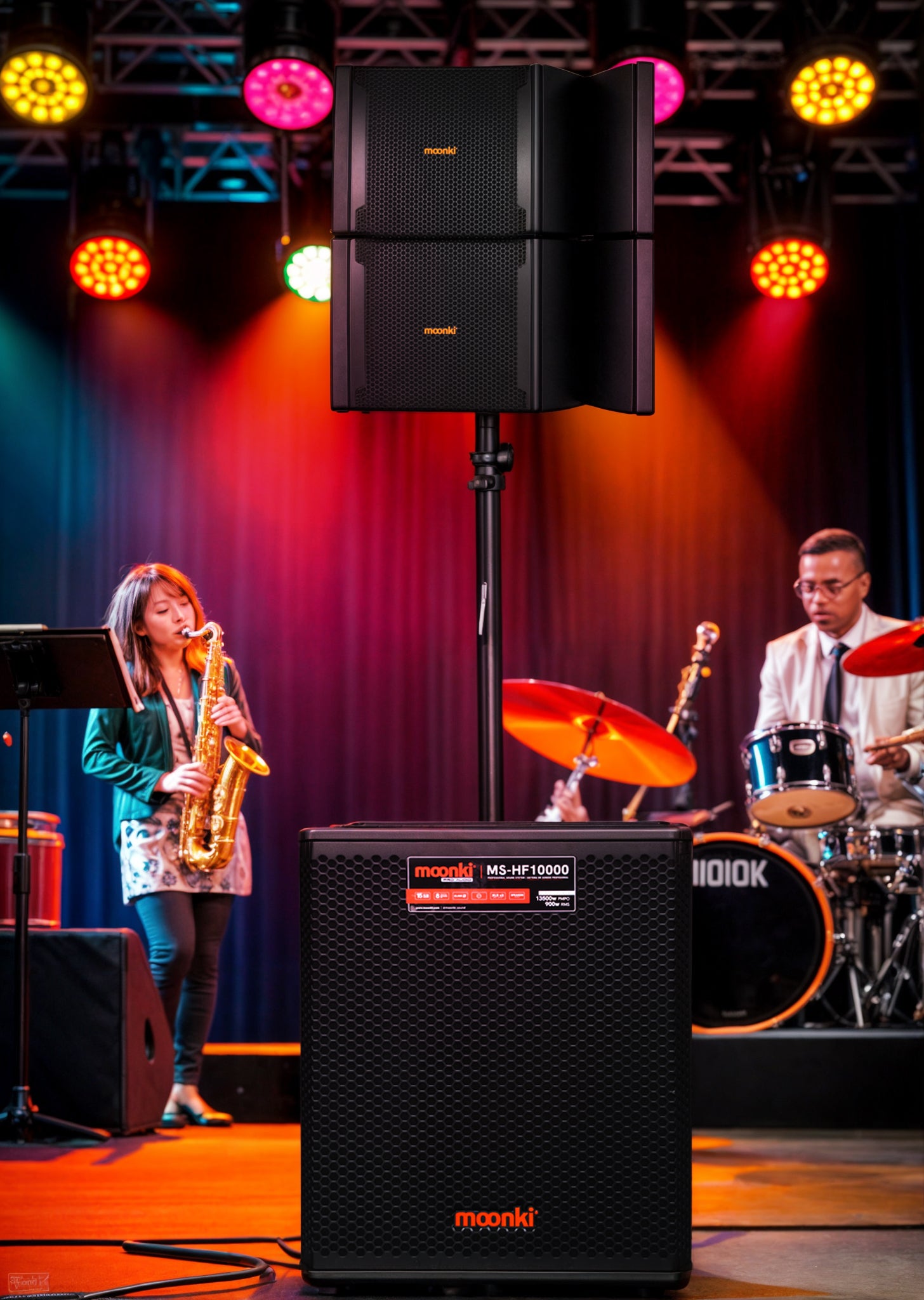 El MS-HF10000 de Moonki es un sistema de sonido profesional diseñado para proporcionar potencia, calidad y confiabilidad en eventos a gran escala. Con una potencia PMPO de 13,500W y una potencia RMS de 900W, este sistema se destaca gracias a su placa amplificadora de Clase D con procesador DSP, asegurando un sonido claro y preciso incluso a altos volúmenes.