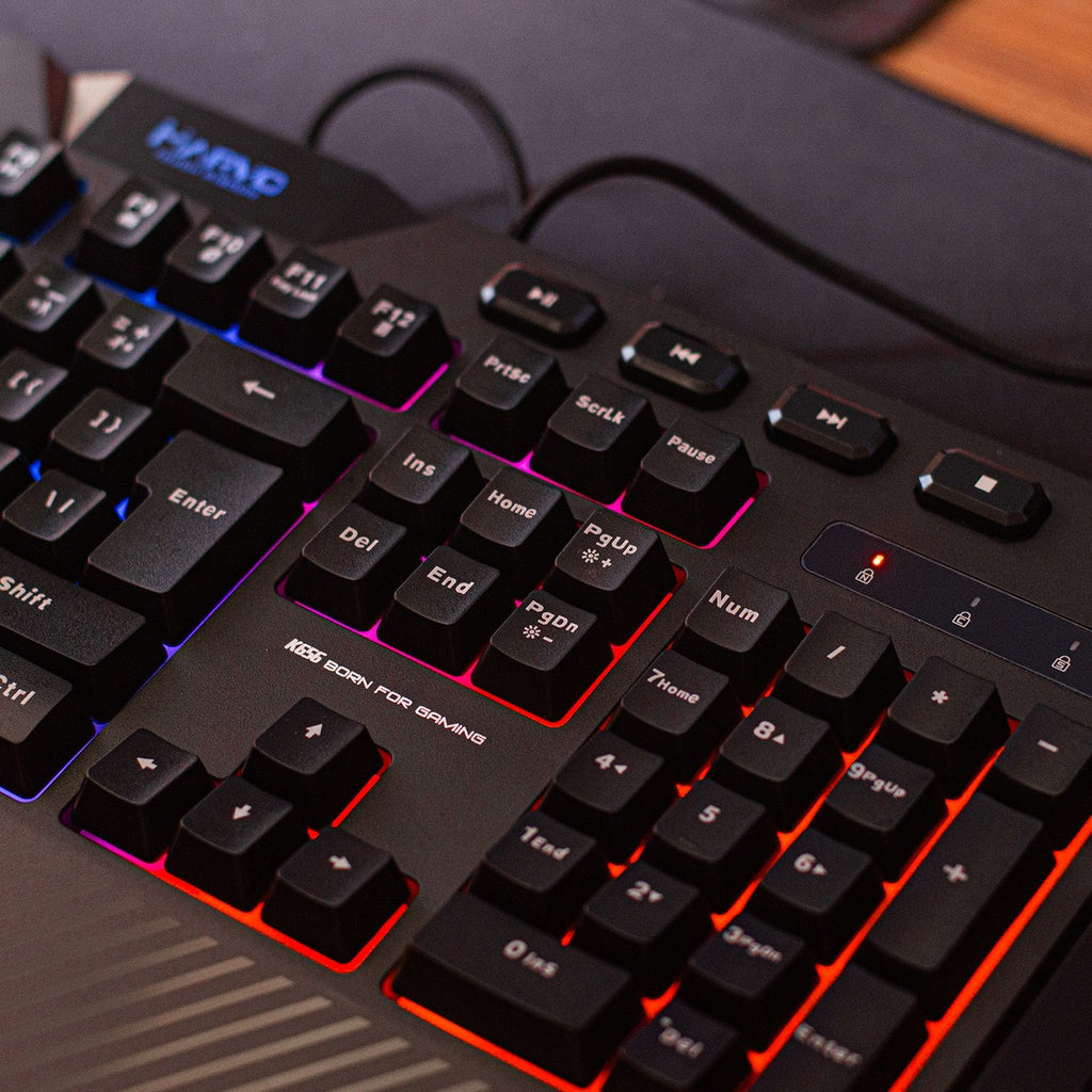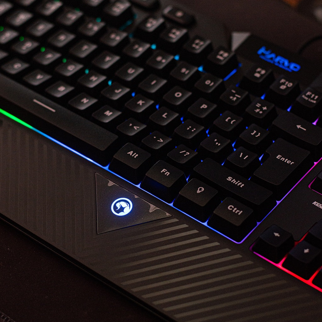 El Marvo K656 es un teclado de membrana con retroiluminación RGB multicolor, ideal para quienes buscan estilo gamer con comodidad y un precio accesible. Su diseño resistente y ergonómico lo convierte en una opción excelente tanto para gaming como para uso diario.