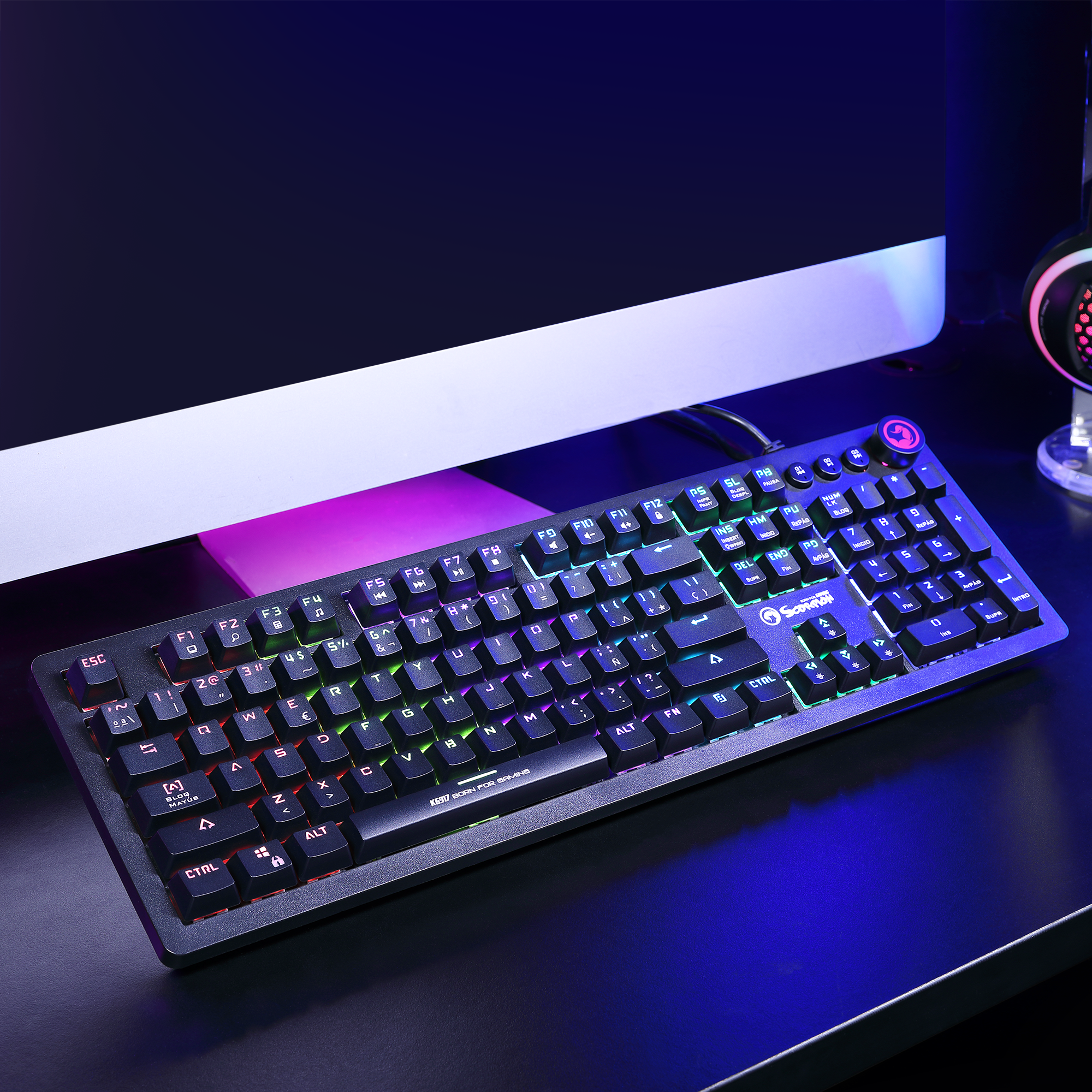 Descubre una nueva forma de jugar con nuestro teclado de alta gama. Con 3 teclas multimedia (G1-G3) y una rueda de volumen, te permiten reproducir, pausar y cambiar archivos multimedia directamente desde el teclado, lo que te garantiza una experiencia de juego sin interrupciones y de máxima fluidez.