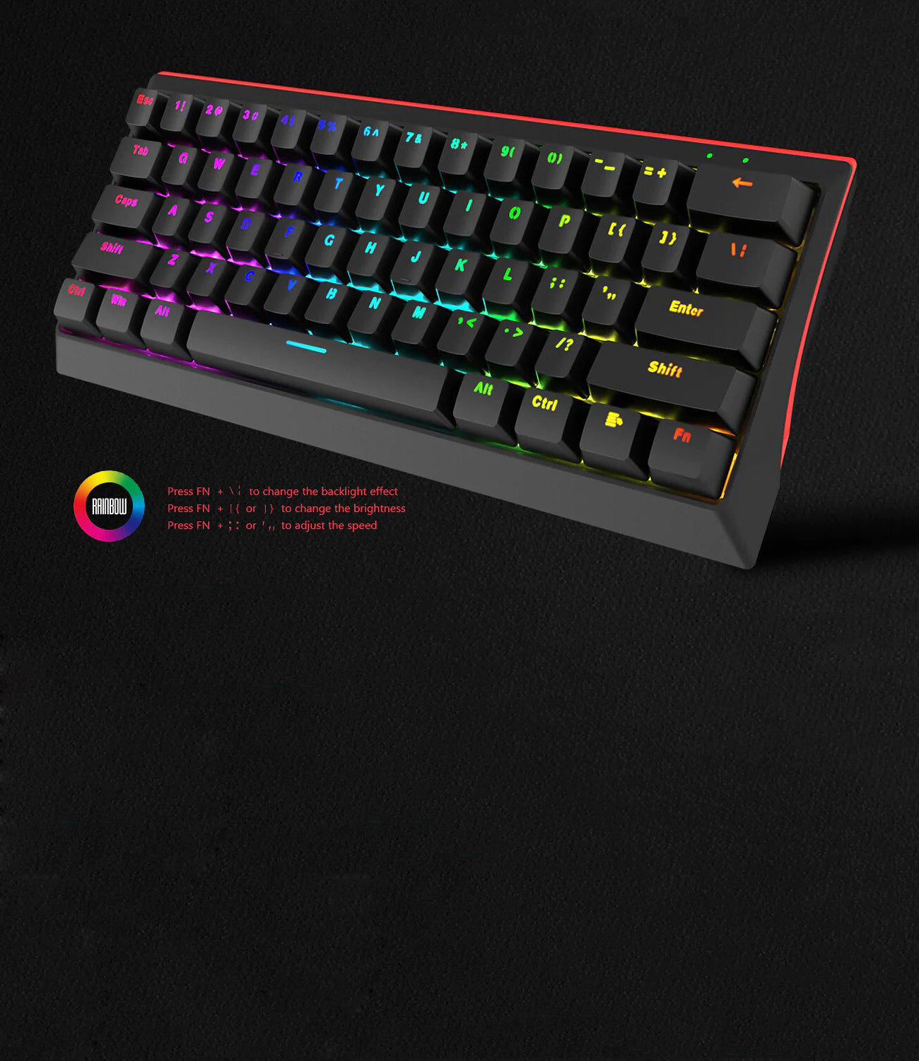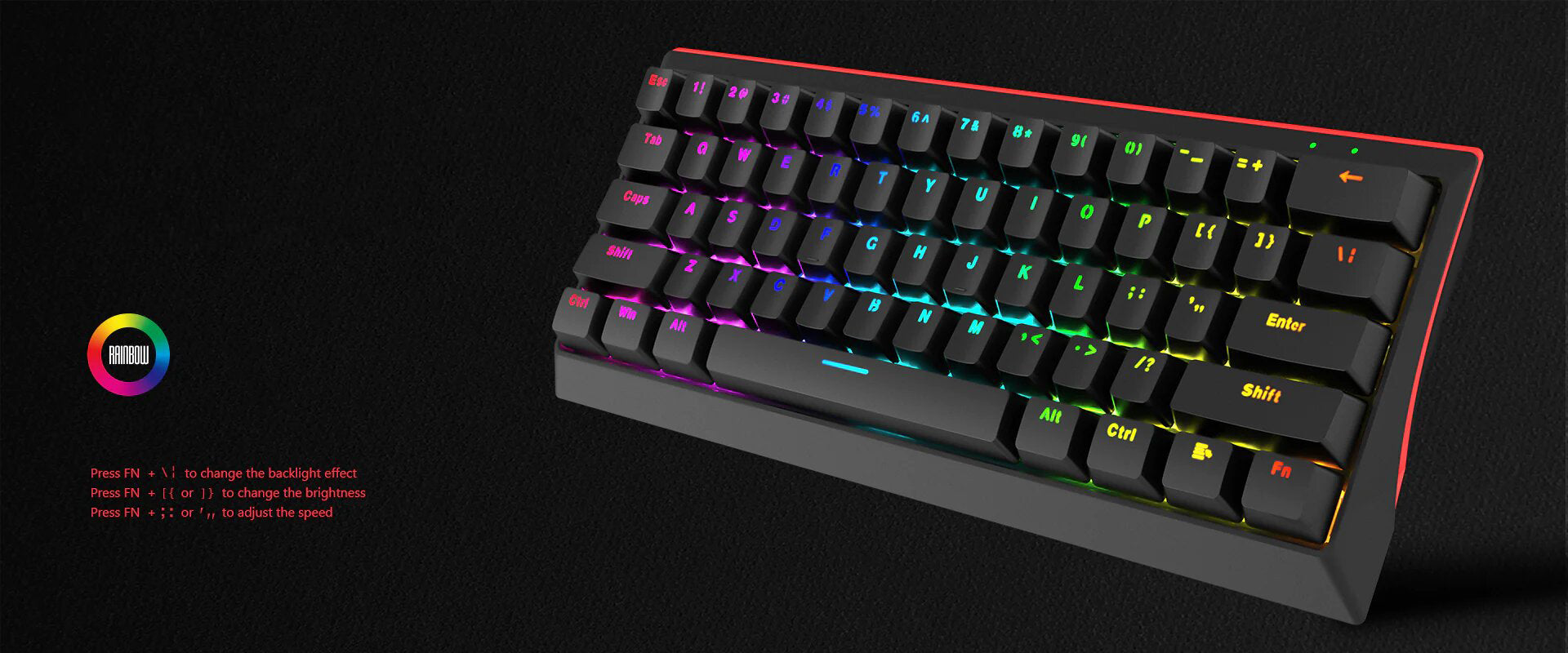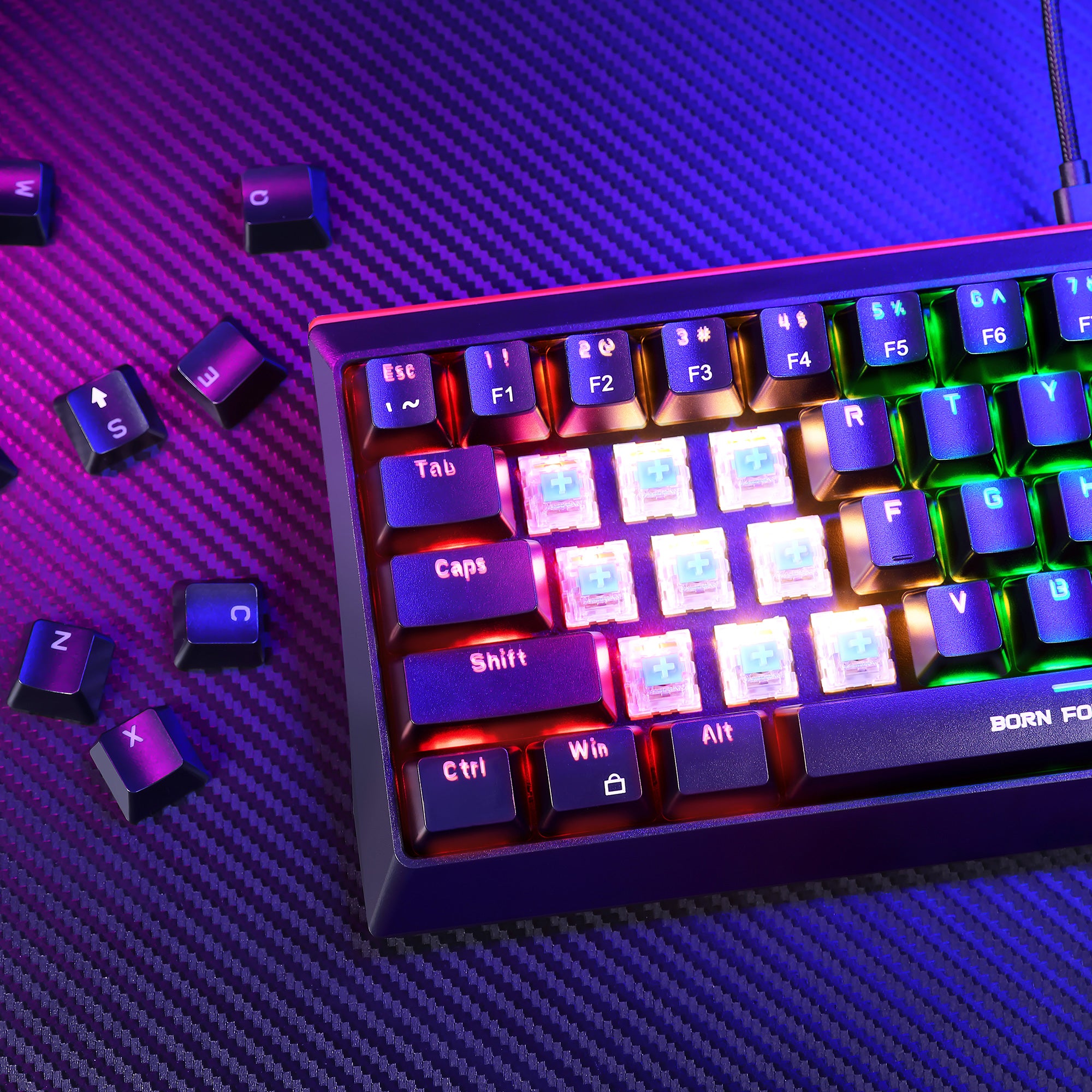 El diseño compacto de 61 teclas representa la máxima optimización del espacio, dejando espacio suficiente para los movimientos más abiertos del mouse, sin sacrificar tu jugabilidad.